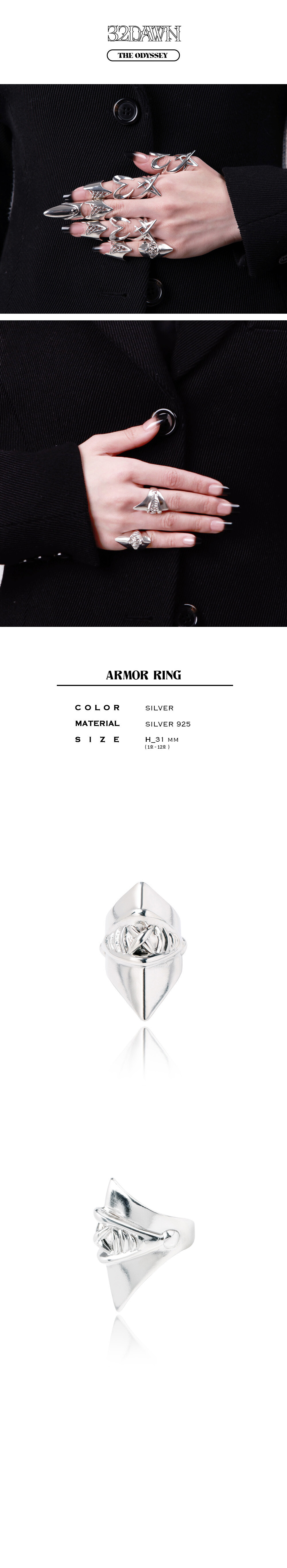 손가락을 단단하게 감싸주는 갑옷 형태의 볼드한 디자인의 애끼링