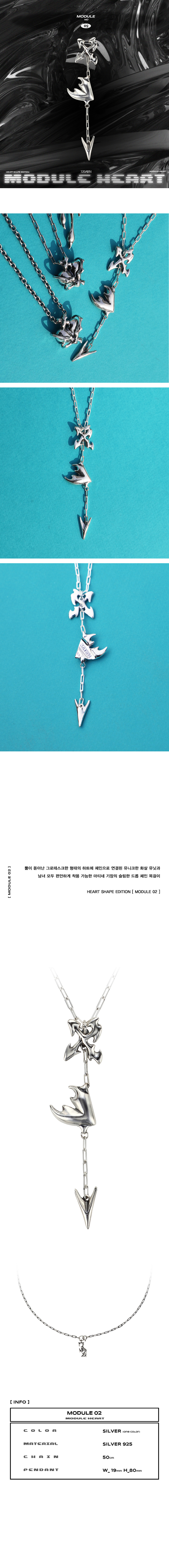 뿔이 돋아난 그로테스크한 형태의 하트에 체인으로 연결된 유니크한 화살 유닛의 MODULE 02