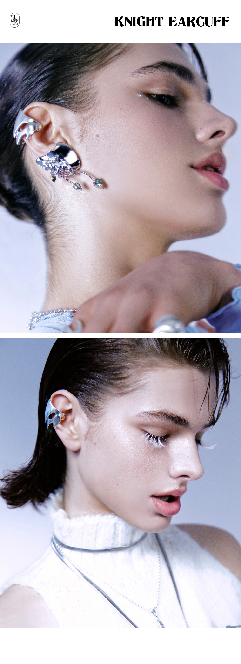 갑옷을 착용한 기사를 형상화한 볼드한 스타일의 이어커프