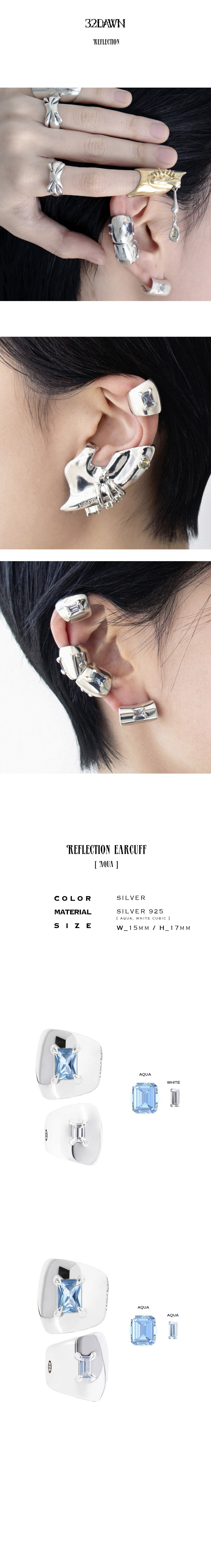 하나의 형태에 사이즈가 다른 2개의 큐빅이 세팅된 리버서블한 이어커프 디자인