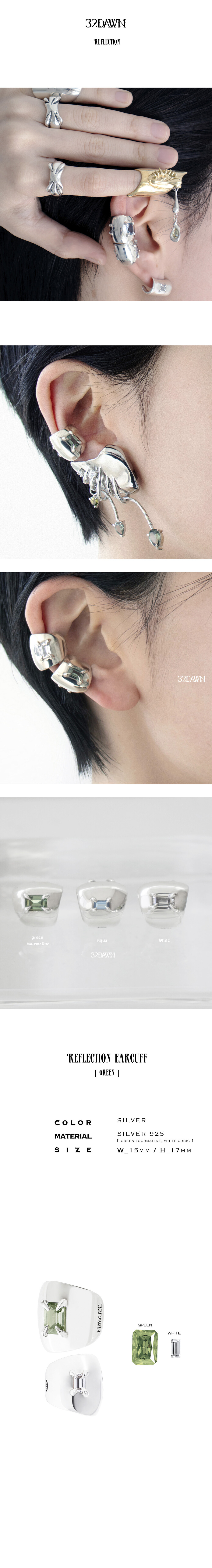 하나의 형태에 사이즈가 다른 2개의 큐빅이 세팅된 리버서블한 이어커프 디자인