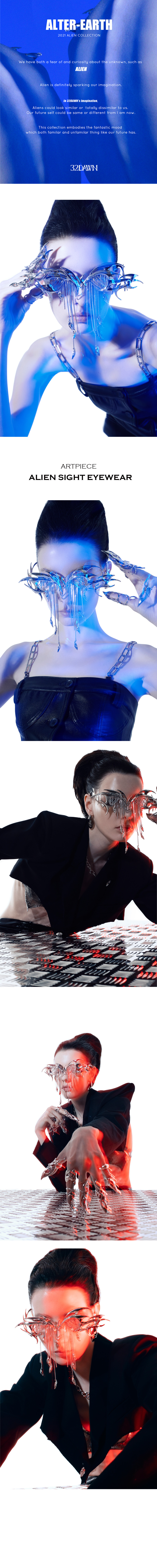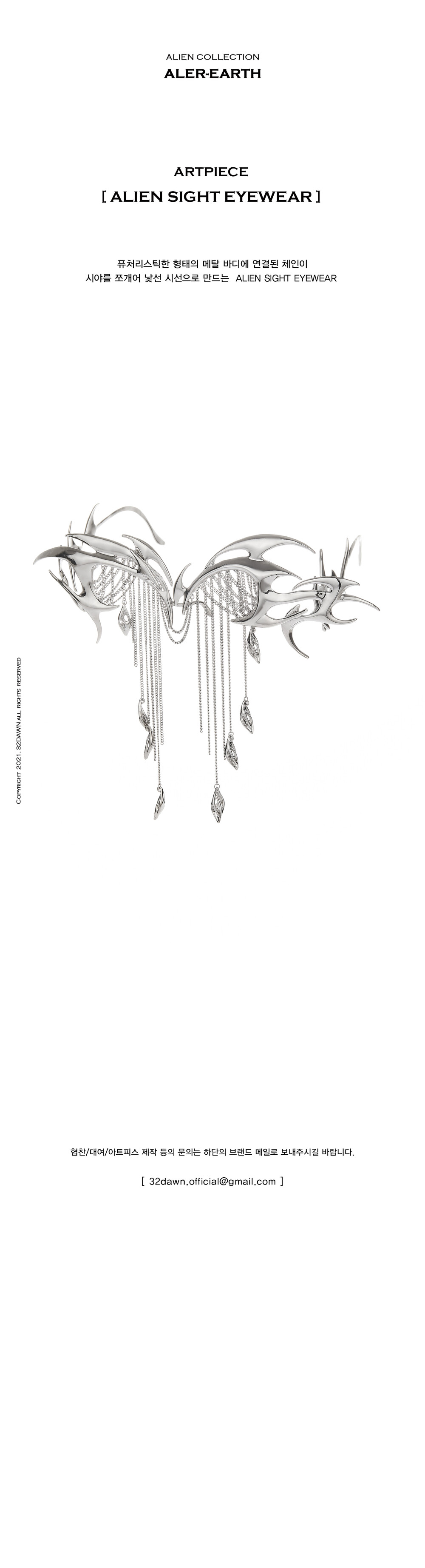 퓨처리스틱한 메탈 바디에 연결된 체인이 시야를 쪼개어 낯선 시선으로 바라보게 하는 ALIEN SIGHT EYEWEAR