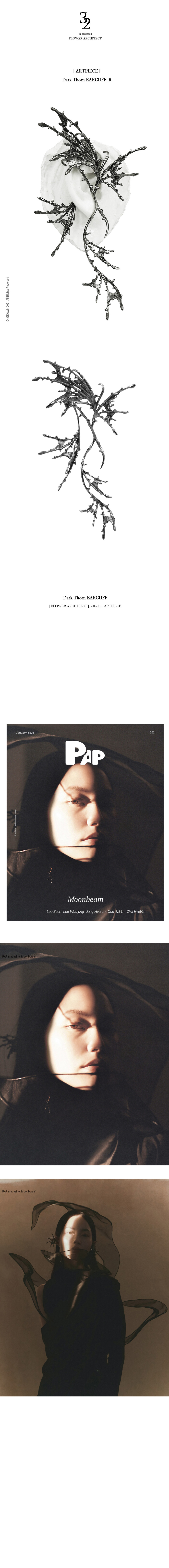 디스토피아를 연상시키는 찢어진 날개가 귀 전체를 다이나믹하게 감싸 귀에 날개가 돋아난 듯한 효과를 주는 볼드한 이어커프 주얼리 입니다.